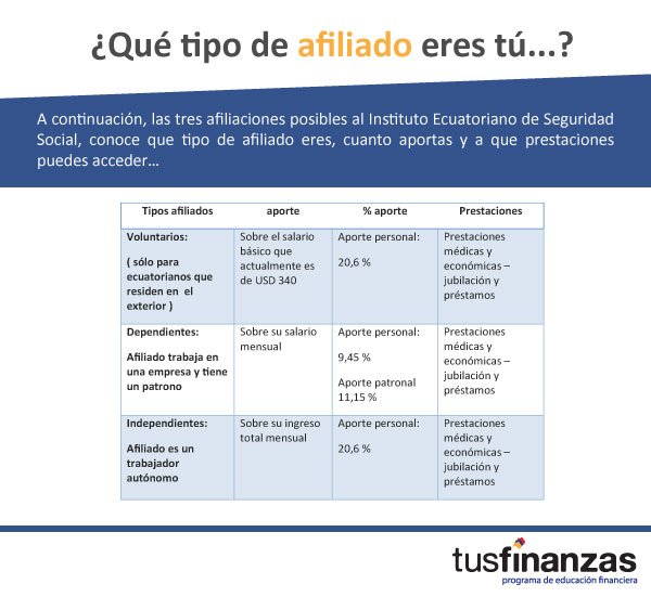 A continuación te explicamos en que consiste cada tipo de afiliado y la cobertura para que conozcas a qué eventos te da acceso la Seguridad Social del Ecuador: